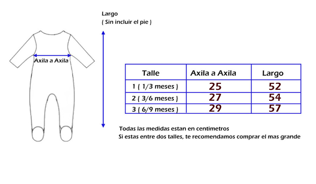 A continuación te dejamos una tabla de medidas de referencia para que puedas comparar con la medida de alguna otra prenda del pequeño hincha. Tene en cuenta que las medidas son aproximadas y pueden tener un margen de diferencia de +/- 1 cm de la tabla
