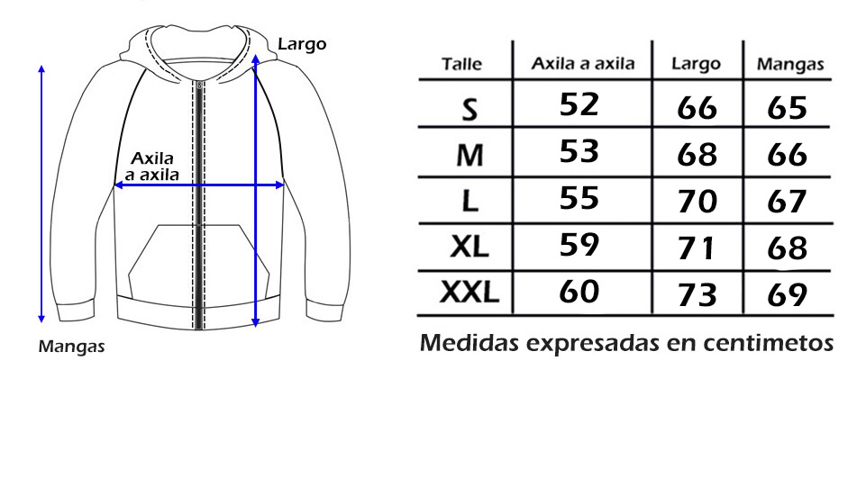 El diseño trae escudo bordado, capucha con cordón ajustable y amplios bolsillos . Viene en talle S M L XL y XXL