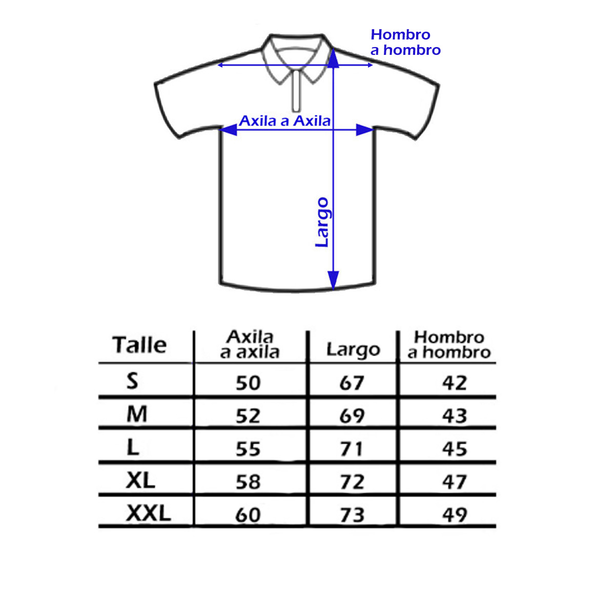 A continuación te dejamos una tabla de talles de referencia para que puedas comparar con la medida de otra remera que vaya bien. Tene en cuenta que las medidas son aproximadas y pueden tener un margen de diferencia de +/- 1 cm de la tabla