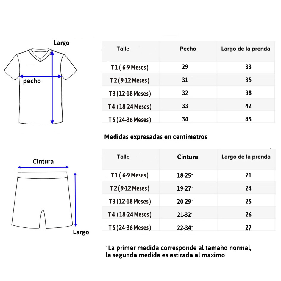 Vienen en talles desde 6 meses a 36 meses