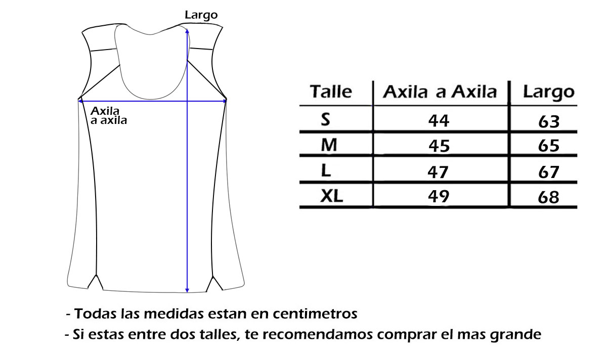 A continuación te dejamos una tabla de medidas de referencia para que puedas comparar con la medida de alguna otra remera. Tene en cuenta que las medidas son aproximadas y pueden tener un margen de diferencia de +/- 1 cm de la tabla